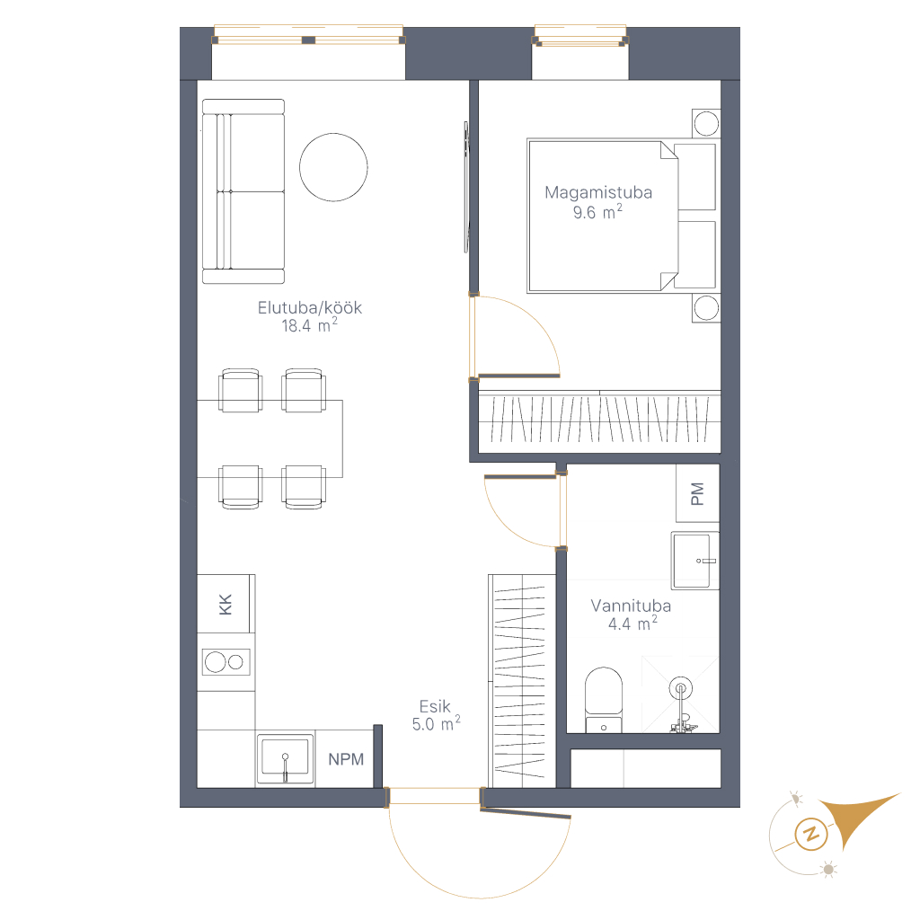 • Личное парковочное место, стоимость 3000€ • Личное парковочное место с возможностью установки электро-зарядки, стоимость 4000€
