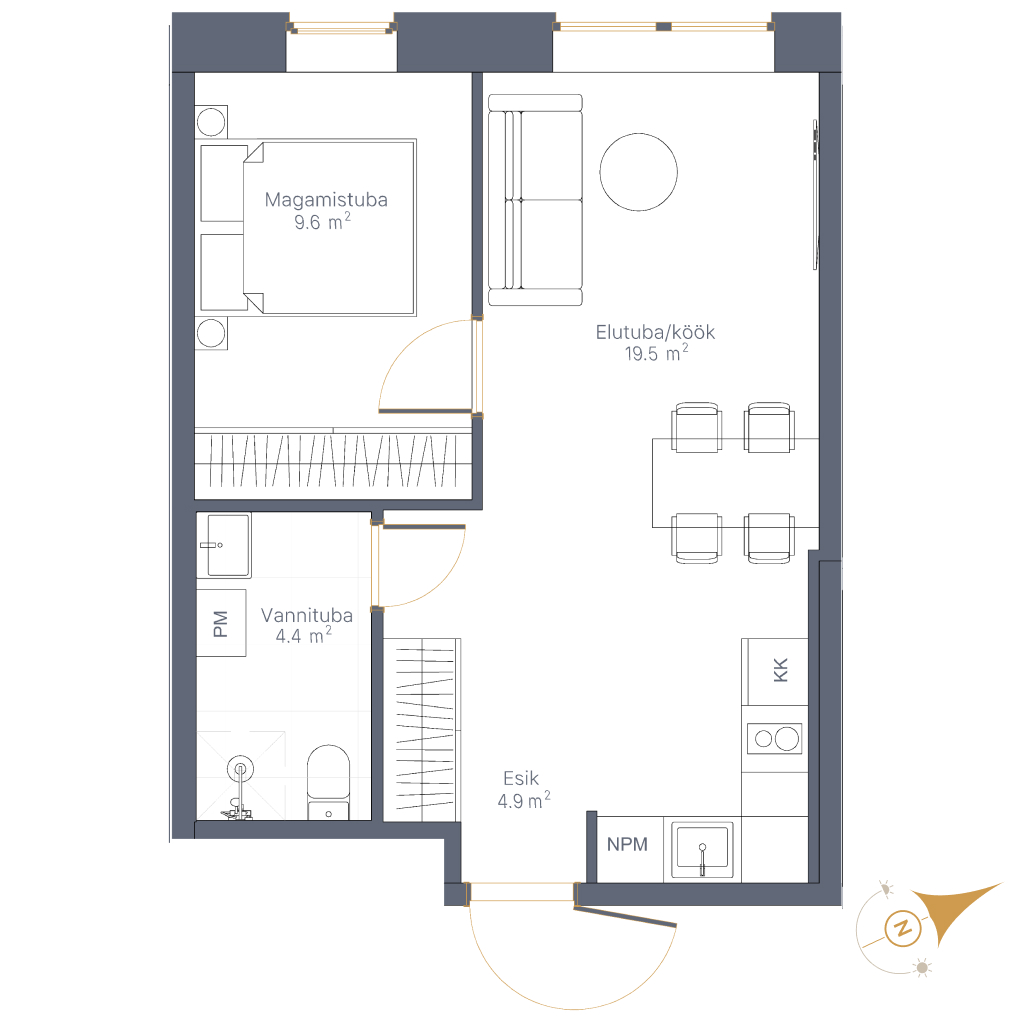 • Личное парковочное место, стоимость 3000€ • Личное парковочное место с возможностью установки электро-зарядки, стоимость 4000€