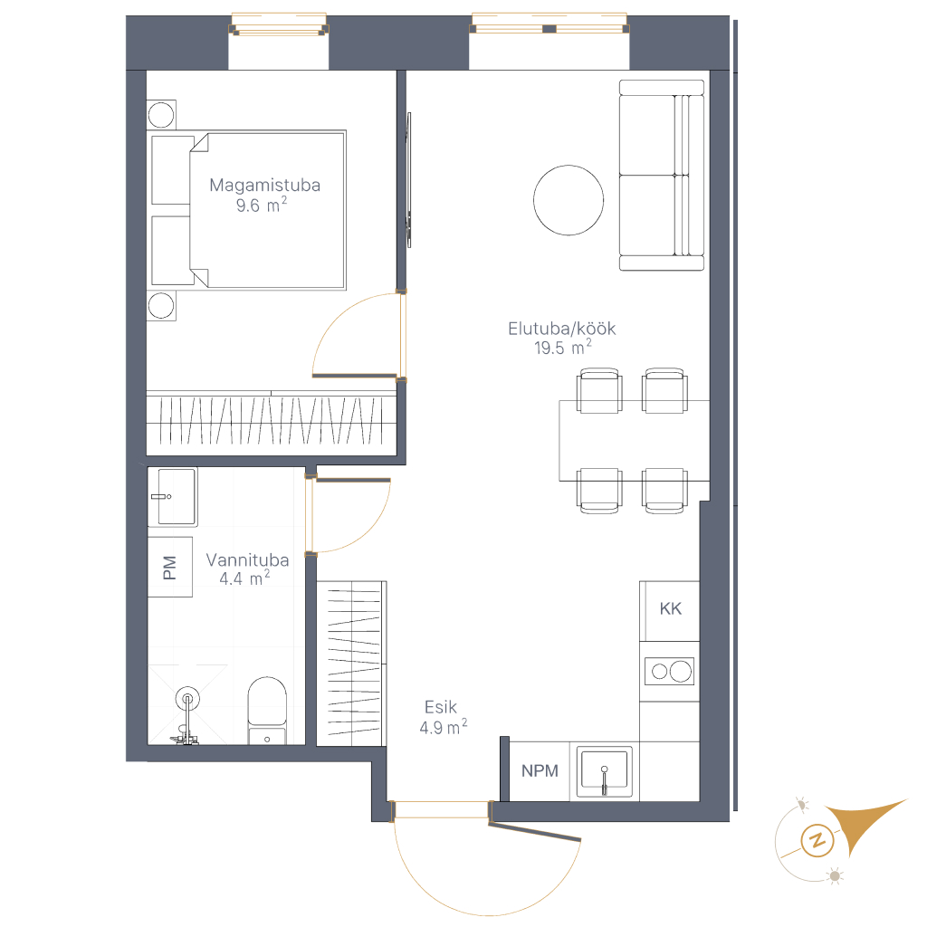 • Личное парковочное место, стоимость 3000€ • Личное парковочное место с возможностью установки электро-зарядки, стоимость 4000€