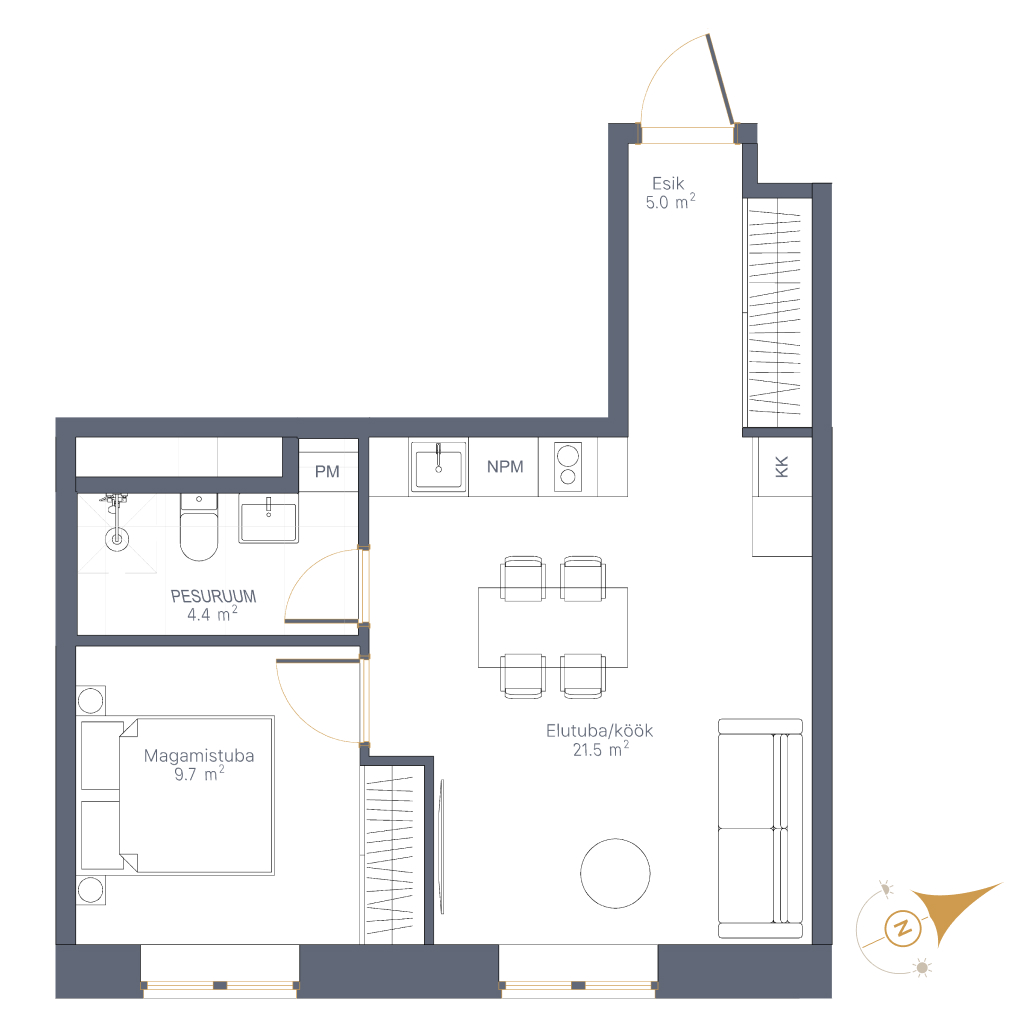 • Личное парковочное место, стоимость 3000€ • Личное парковочное место с возможностью установки электро-зарядки, стоимость 4000€