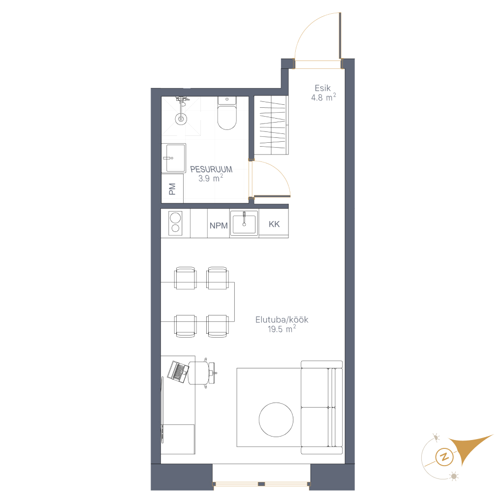 • Личное парковочное место, стоимость 3000€ • Личное парковочное место с возможностью установки электро-зарядки, стоимость 4000€
